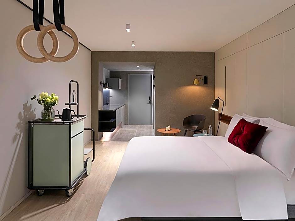 The 32 sqm studio is equipped with an air purification system, softened water, a smart room control system and a comfortable Stey Queen bed.